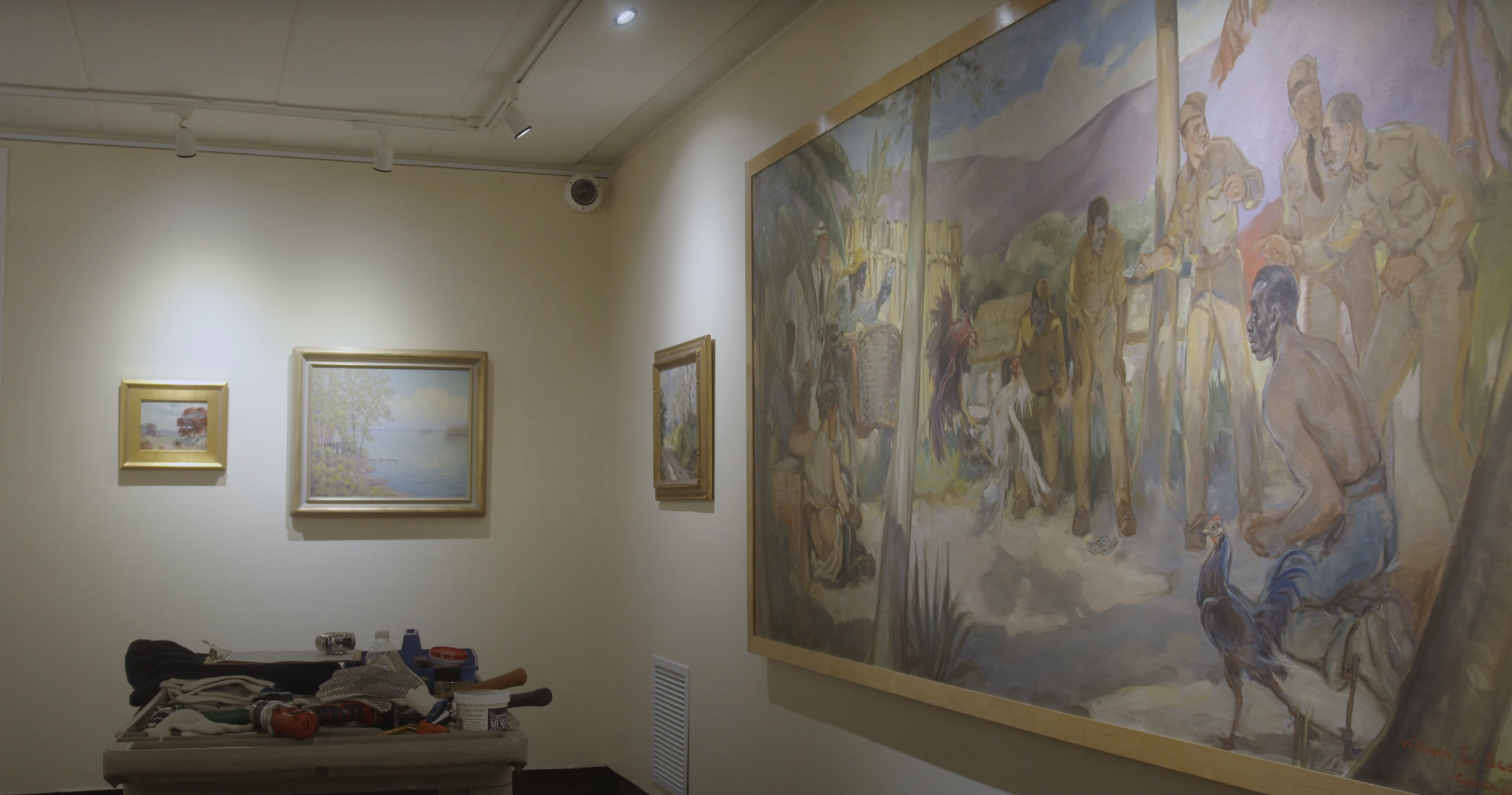 Specifically, the exhibition in the film is entitled “In the World of Art” and showcases the writings of Lucille Morehouse, a local art critic, and the works of which she wrote about.
